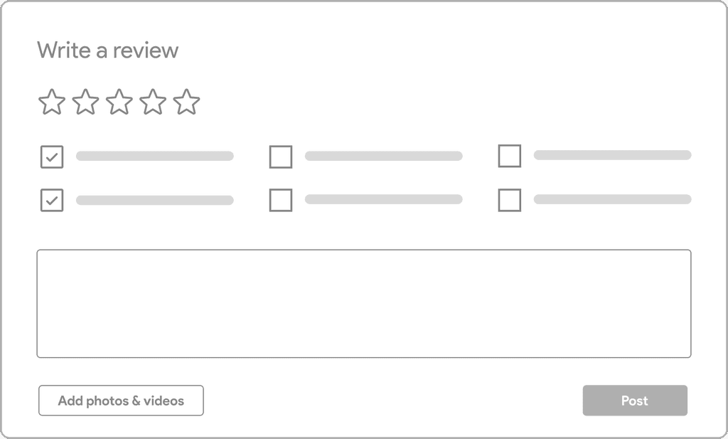 Reviews play a critical role in customers' decision-making, making it vital for merchants to receive them to build trust. We're exploring ways to help users write high-quality reviews and to enable merchants to integrate review systems into their storefronts.